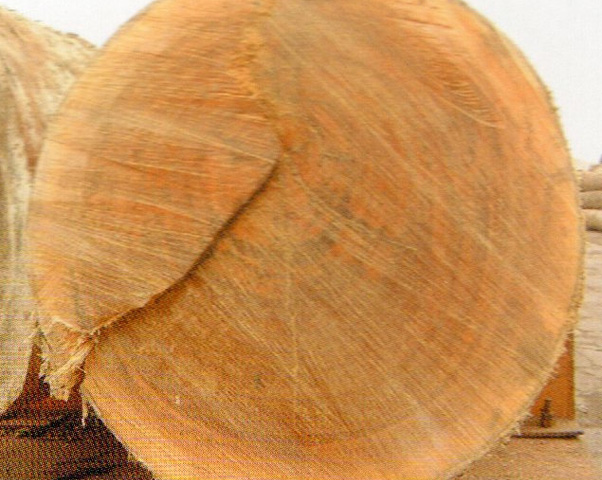 心邊材區別明顯。心材淺褐色或金黃褐色;邊材灰白色至灰黃色,寬5~8cm,具黑色同心圓狀條紋。生長輪不明顯。